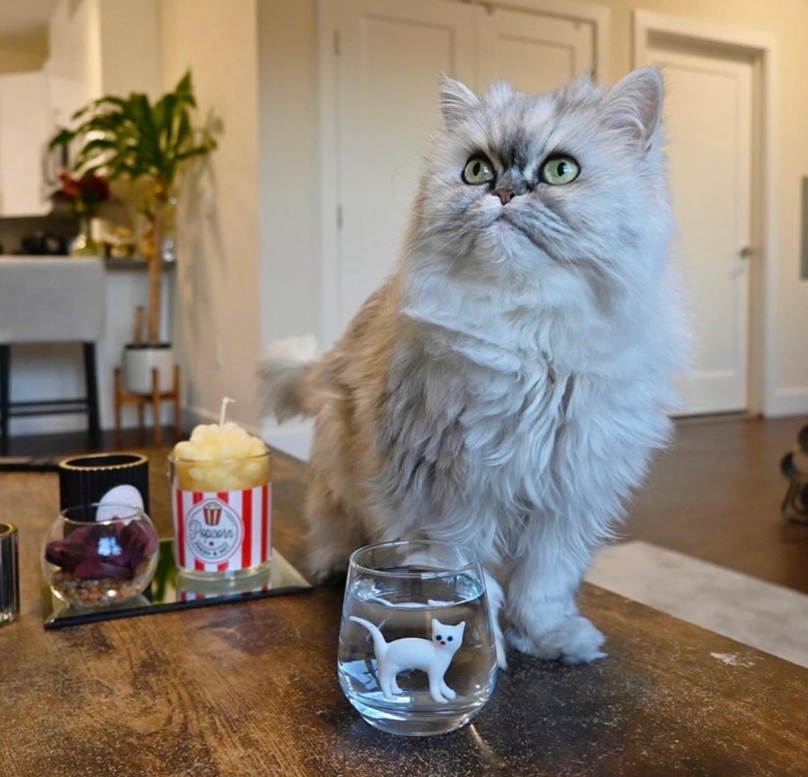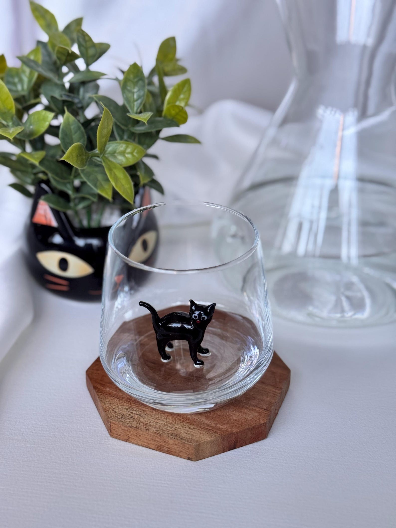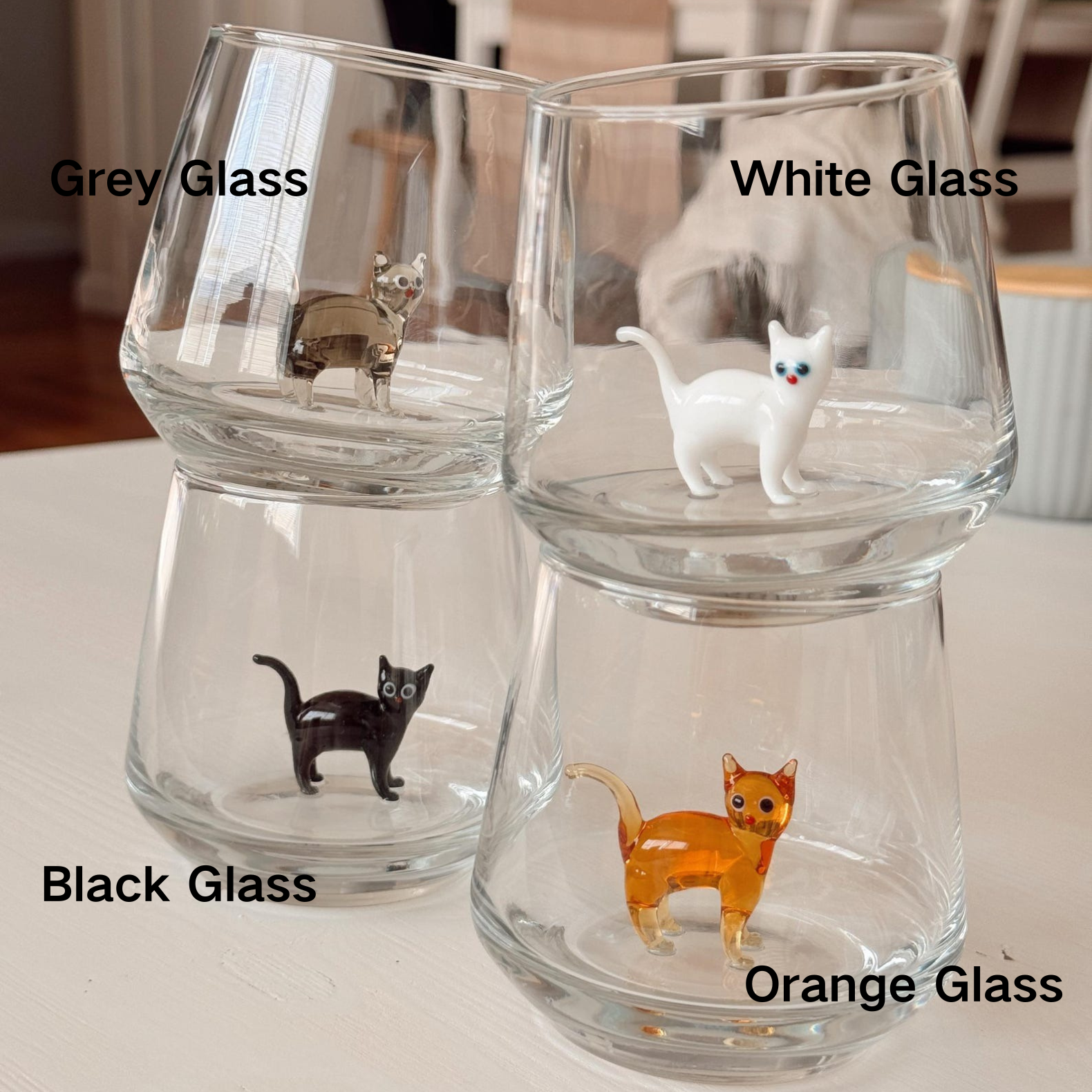 Cat Figurine Glass Cup Murano Wine Glass Cat Lover Gift Handmade Glassware 3D Cat Cup