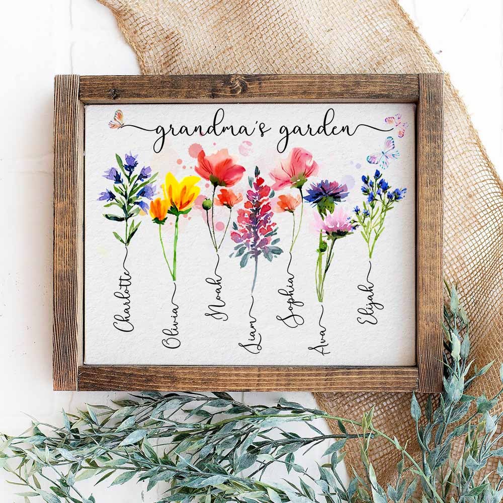 Custom Birth Month Flower Grandma's Garden Wooden Sign For Mom Grandma Mother's Day Gift