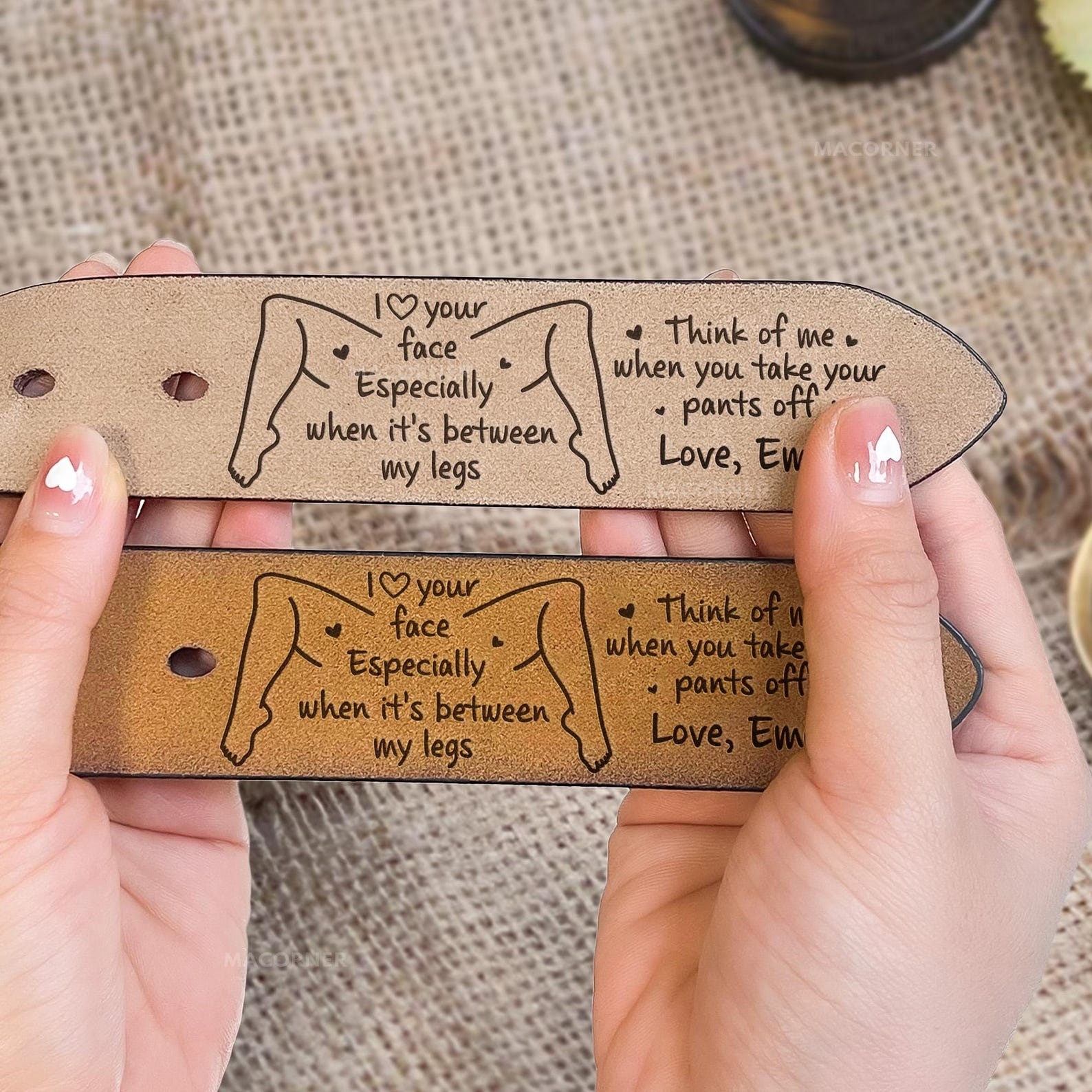 I Love Your Face Especially When It's Between My Legs Leather Belt Custom Engraved Leather Belt Anniversary Gift For Boyfriend Husband