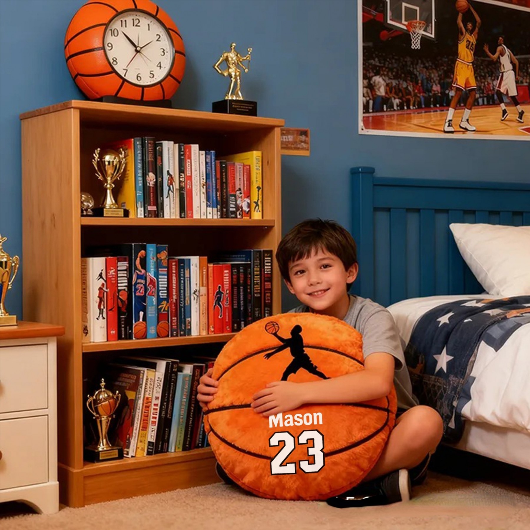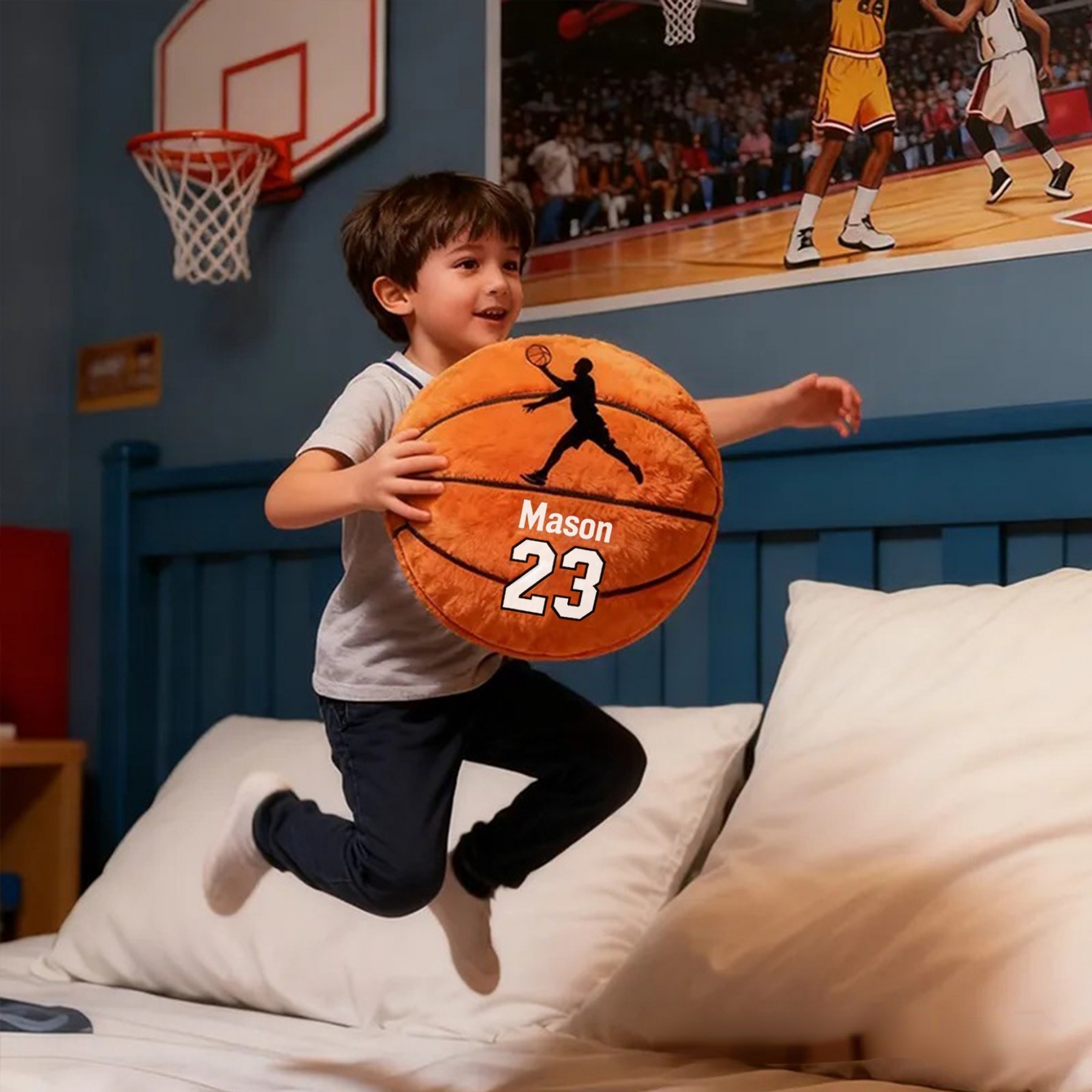 Personalized Basketball Pillow with Custom Name and Jersey Number for Kids and Sports Fans
