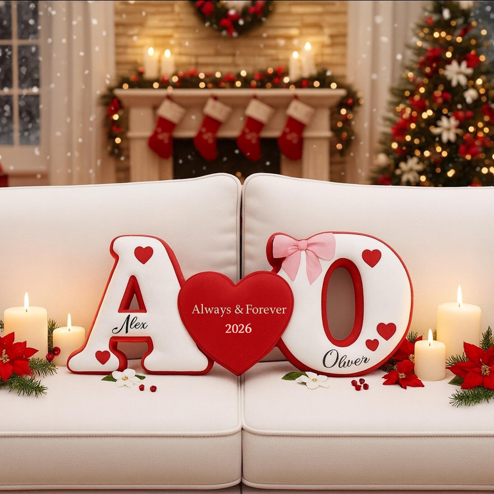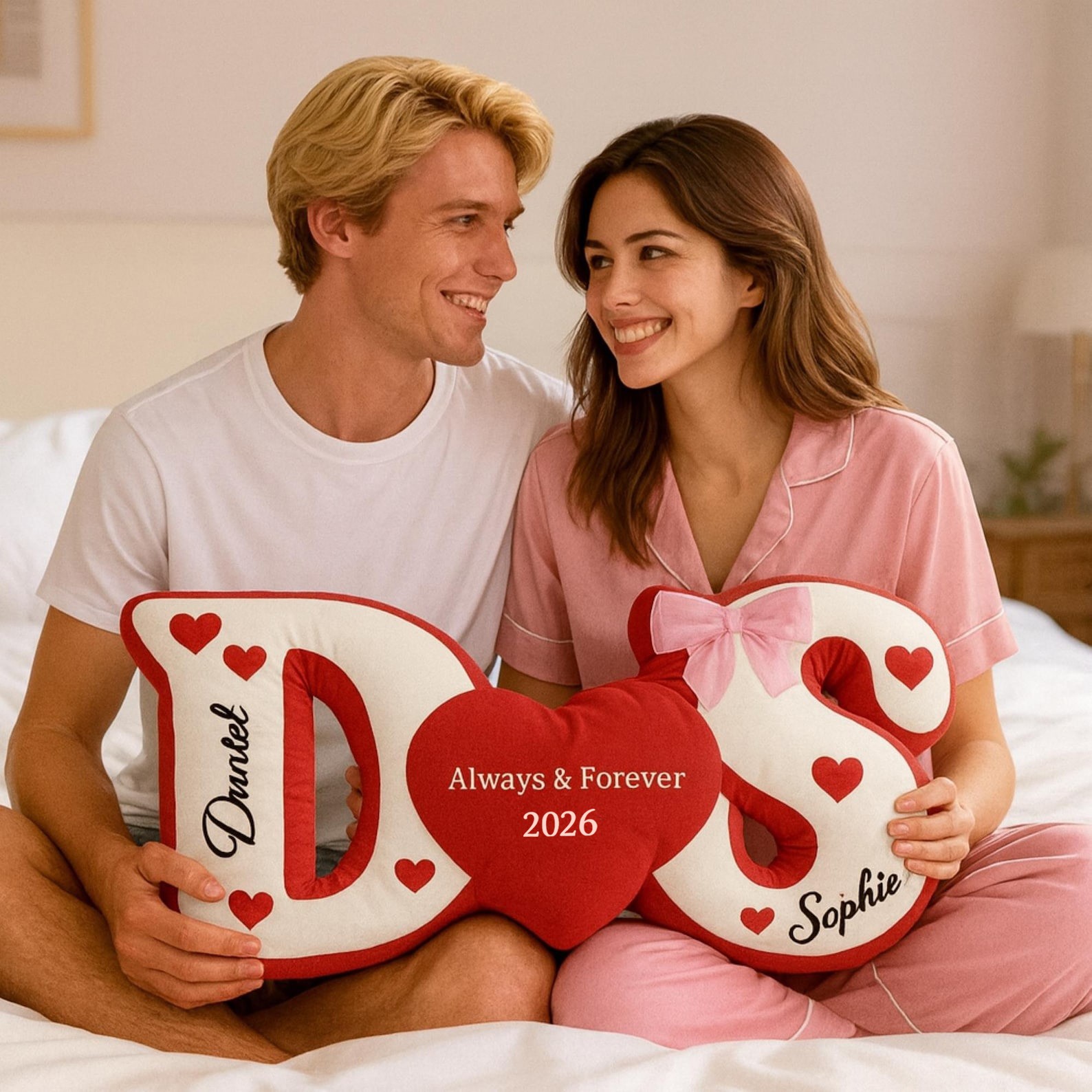 Personalized Couple Custom Initial Heart Throw Pillow Custom Names Couple Home Pillow