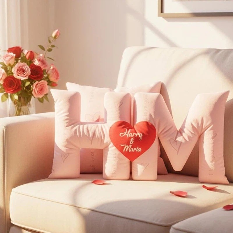 Personalized Couple Custom Initial Heart Throw Pillow Custom Names Couple Home Pillow Romantic