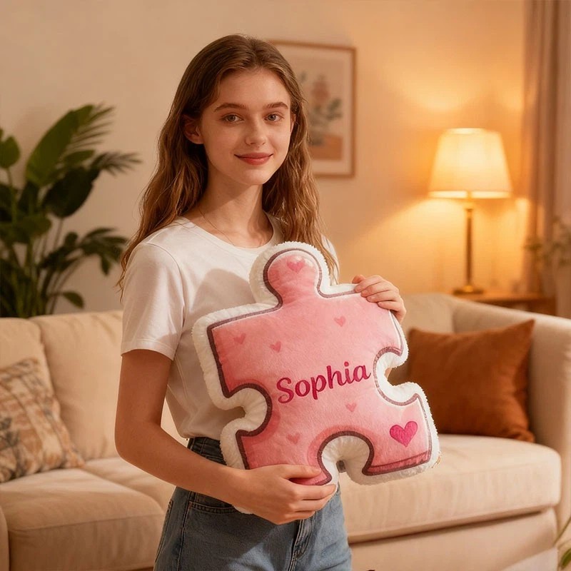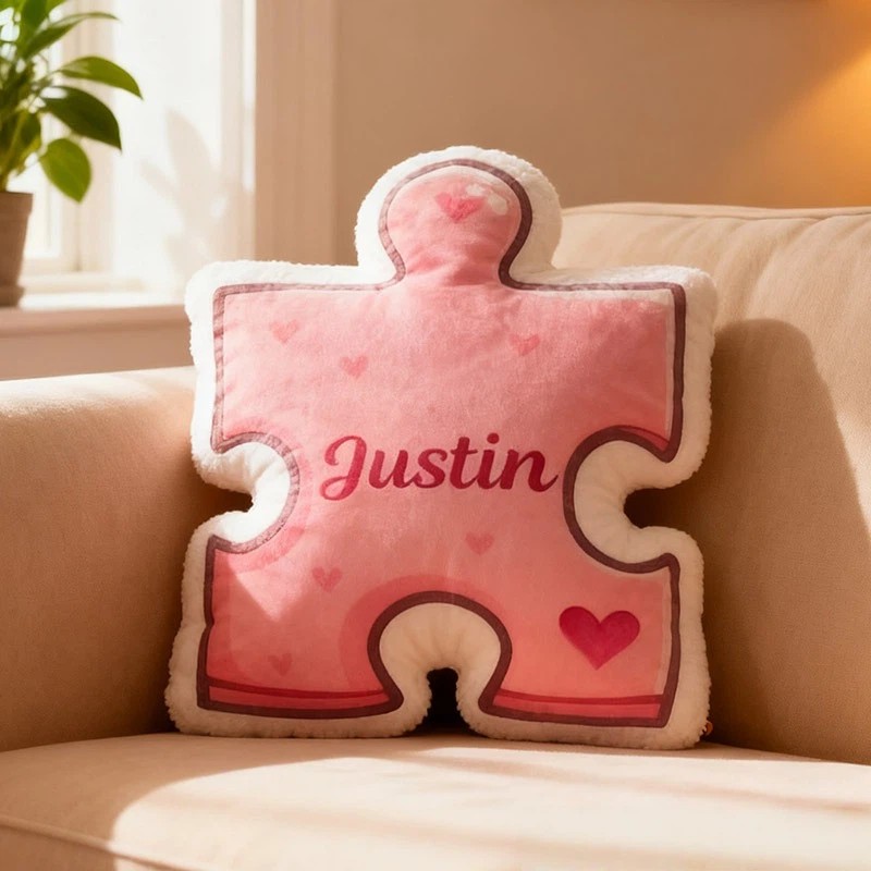 Personalized Couple Heart Puzzle Piece Pillow Custom Couple Name Cushion Valentine's Day Pillow