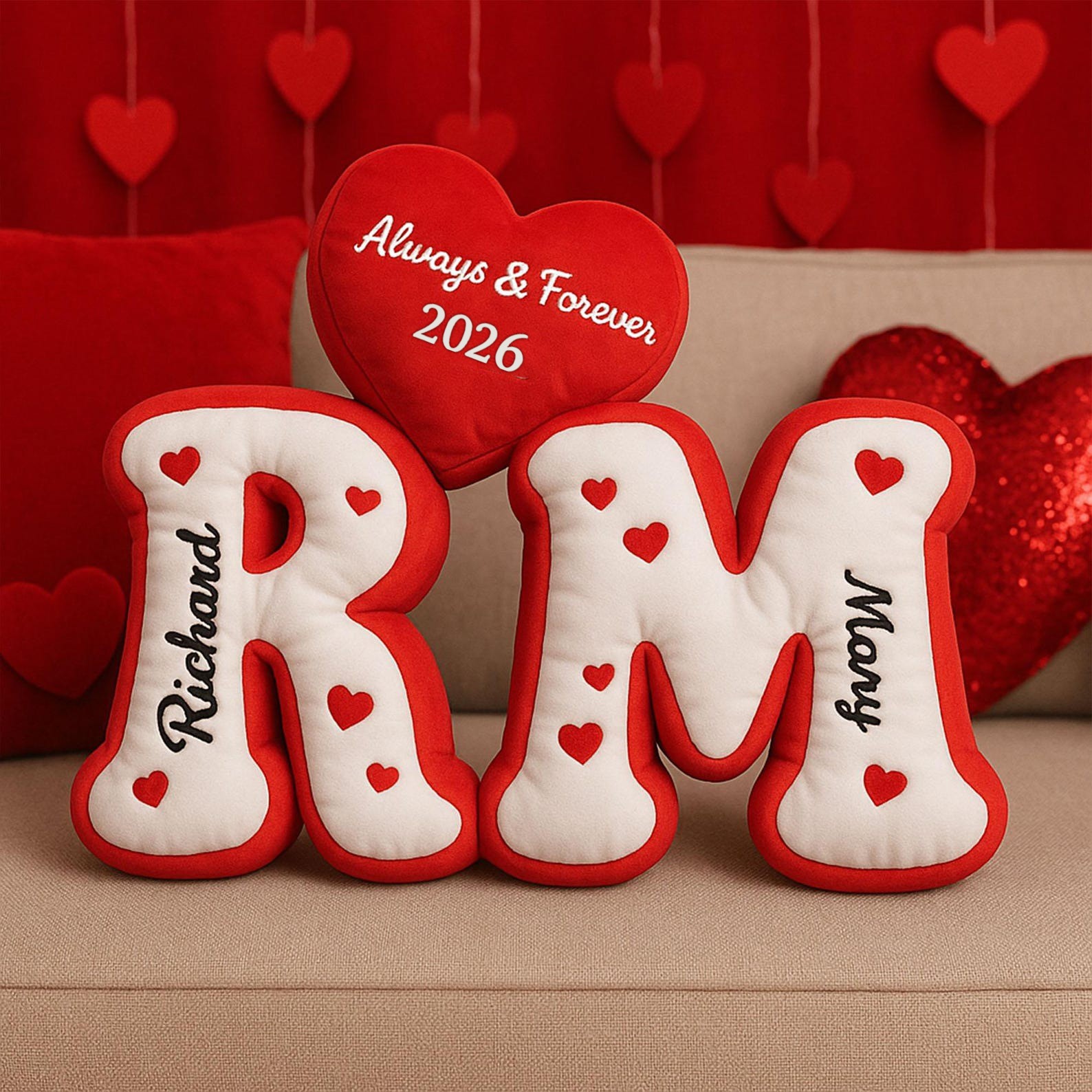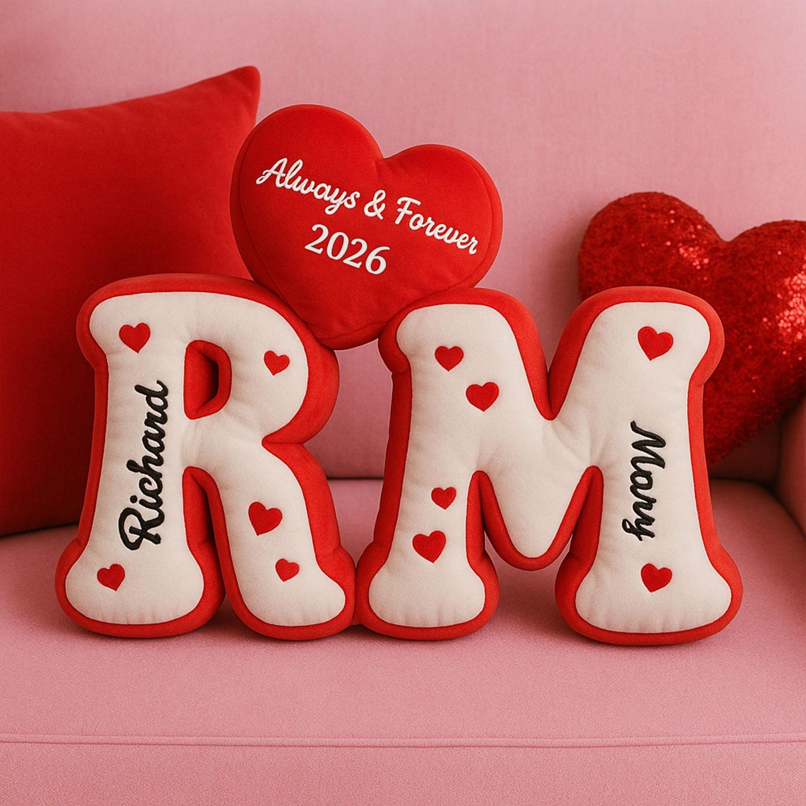 Personalized Couple Initial Pillow Set with Heart Custom Name Plush Gift Romantic Valentine’s Gift