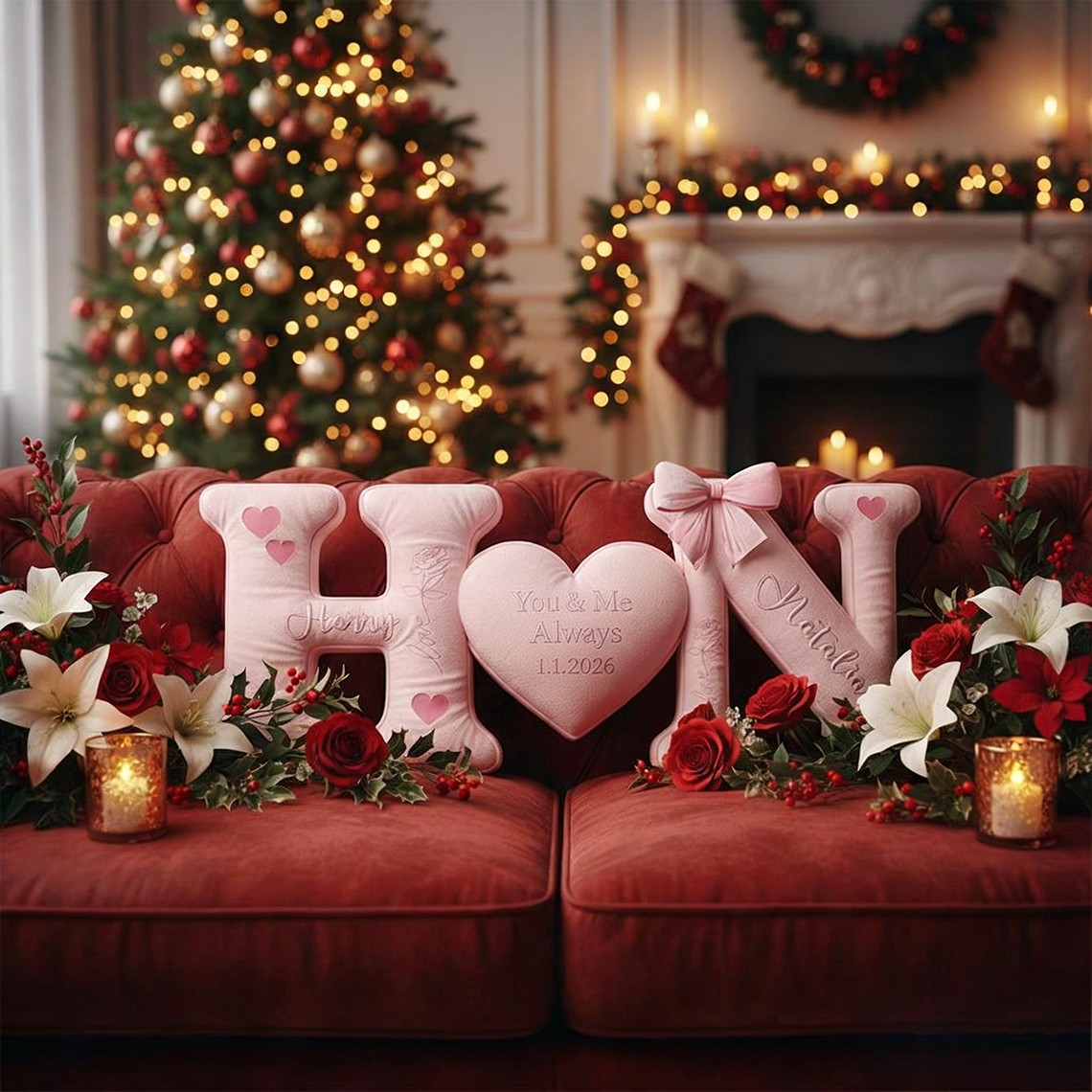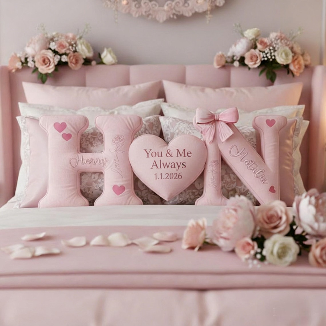 Personalized Couple Letter Pillows Custom Heart Name Cushion Valentine's Day Gift