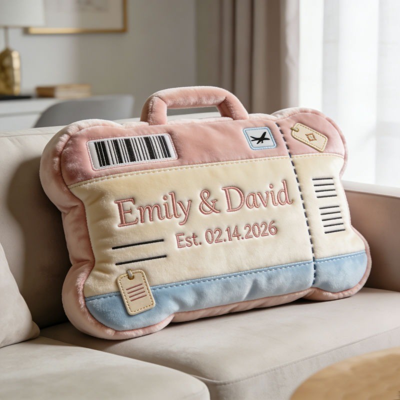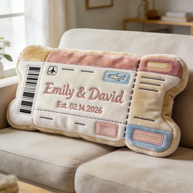 Personalized Couple's Love Themed Airplane Ticket Throw Pillow