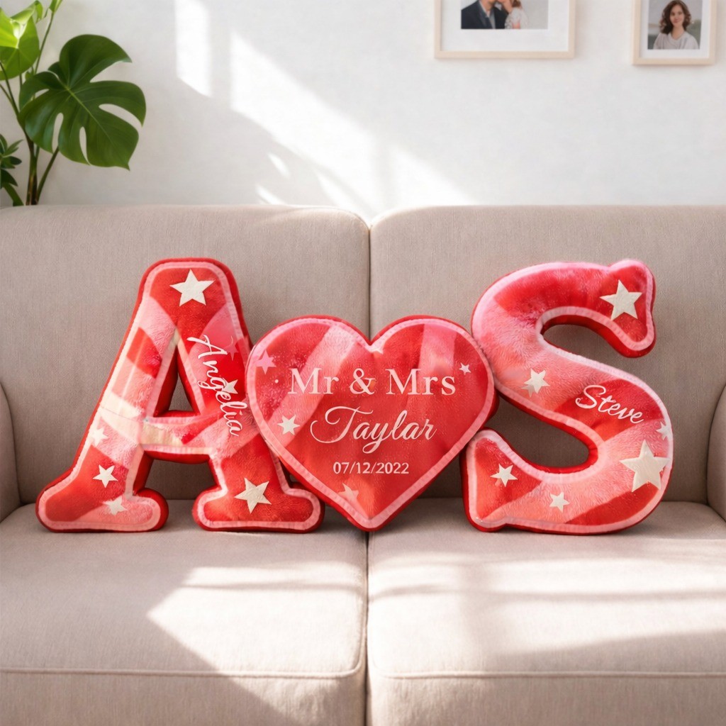 Personalized Couple Star Pattern Design Pillow Sets with Anniversary Date for Valentine's Day Gifts