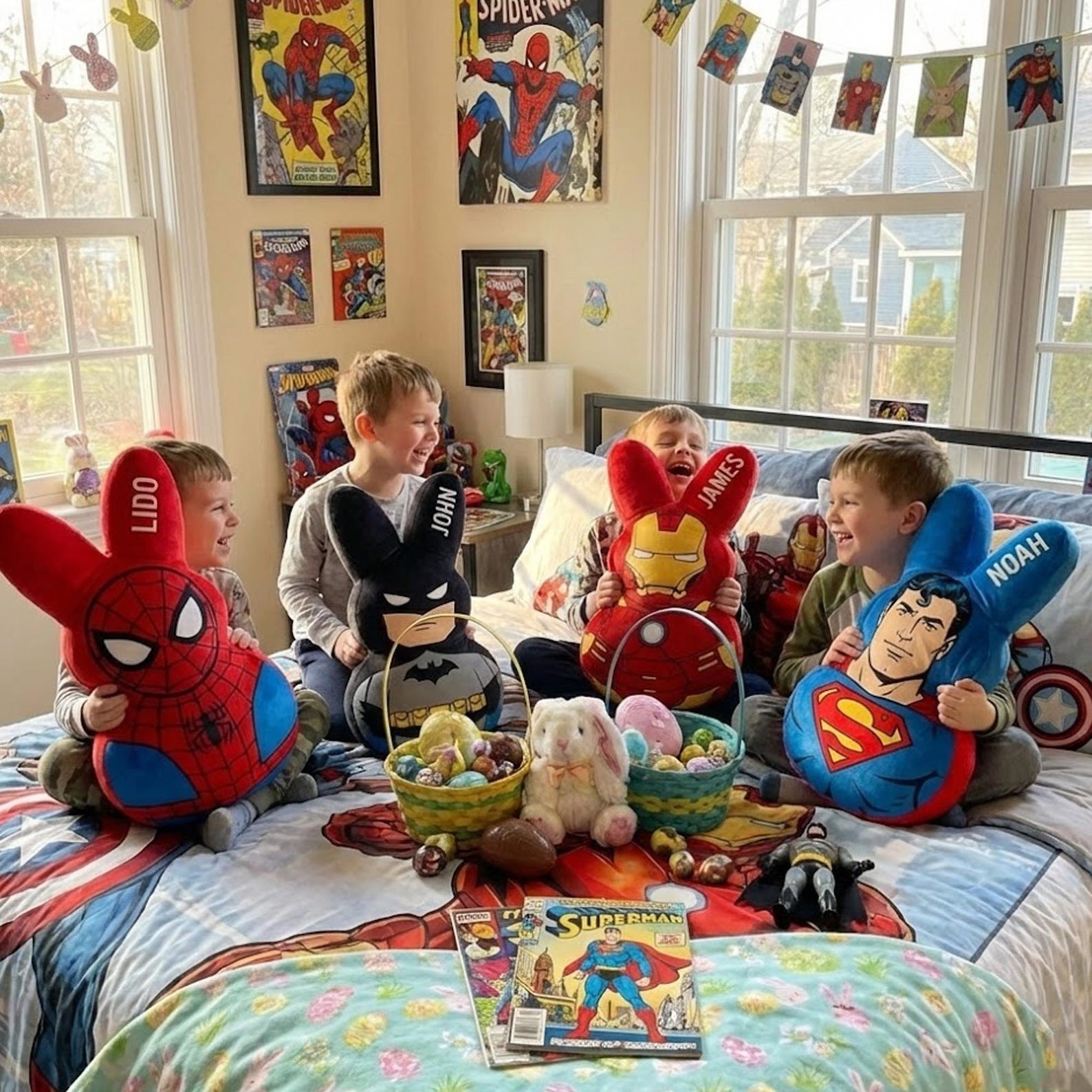 Personalized Easter Bunny Family Plush Pillow Custom Name Pillow, Easter Basket Gift Kids Pillow Gift for Boy or Girl