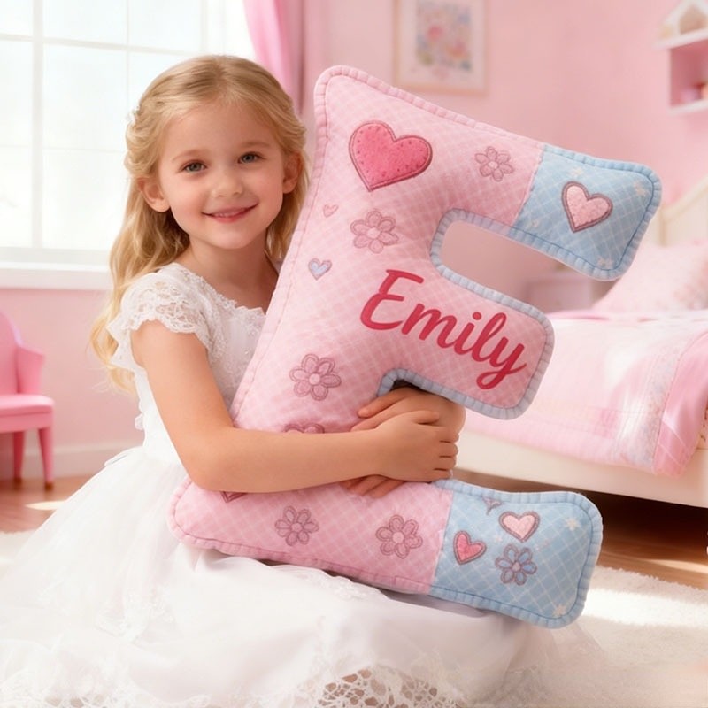 Personalized Flower Girl Floral Heart Pink Plaid Graphic 3D Printed Pillow Custom Girl friend Name Cushion Valentine's Day Gift