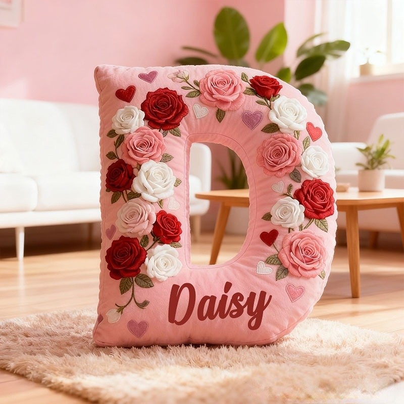 Personalized Girl friend Rose Pink 3D Printed Pillow Custom Name Cushion Valentine's Gift