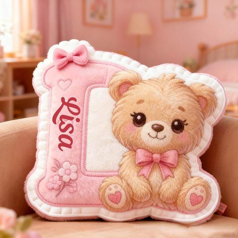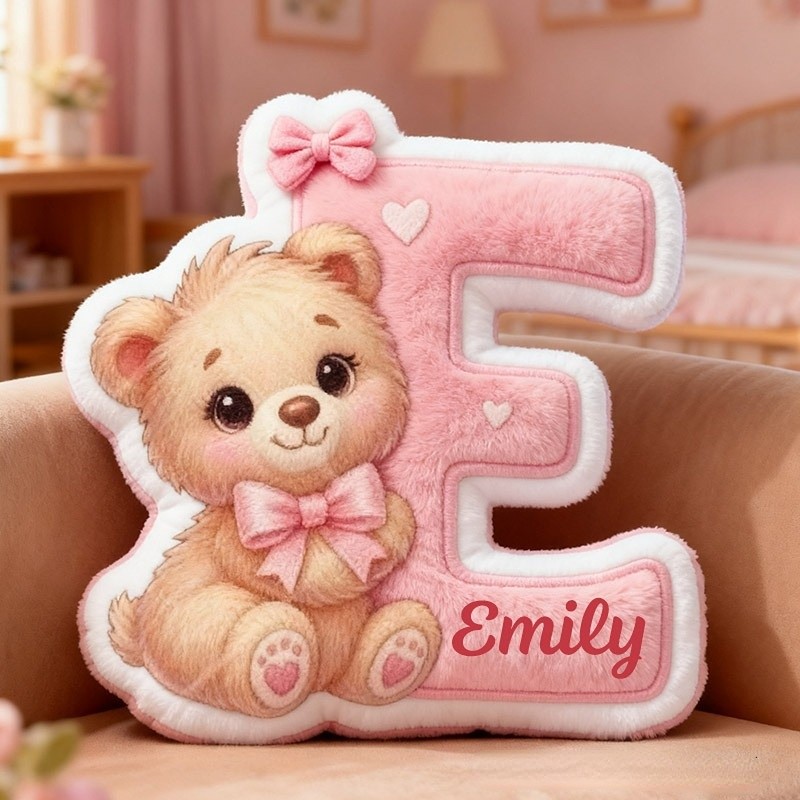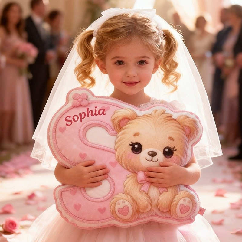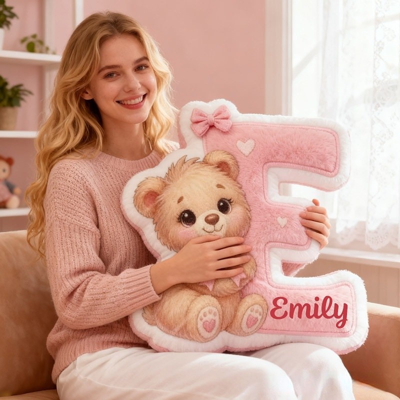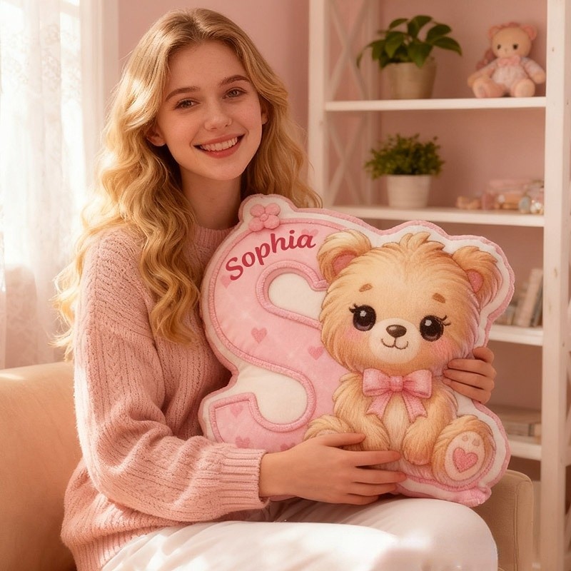 Personalized Girlfriend Graphic 3D Print Heart Bear 26 Letter Pillow Custom Wife Valentine's Day Gift