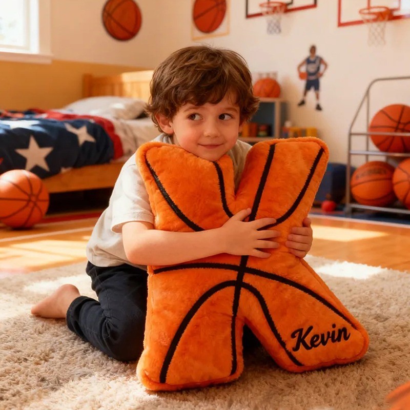 Personalized Graphic3DPrint Basketball Letter Shaped Pillow with Custom Name for Sports Fans