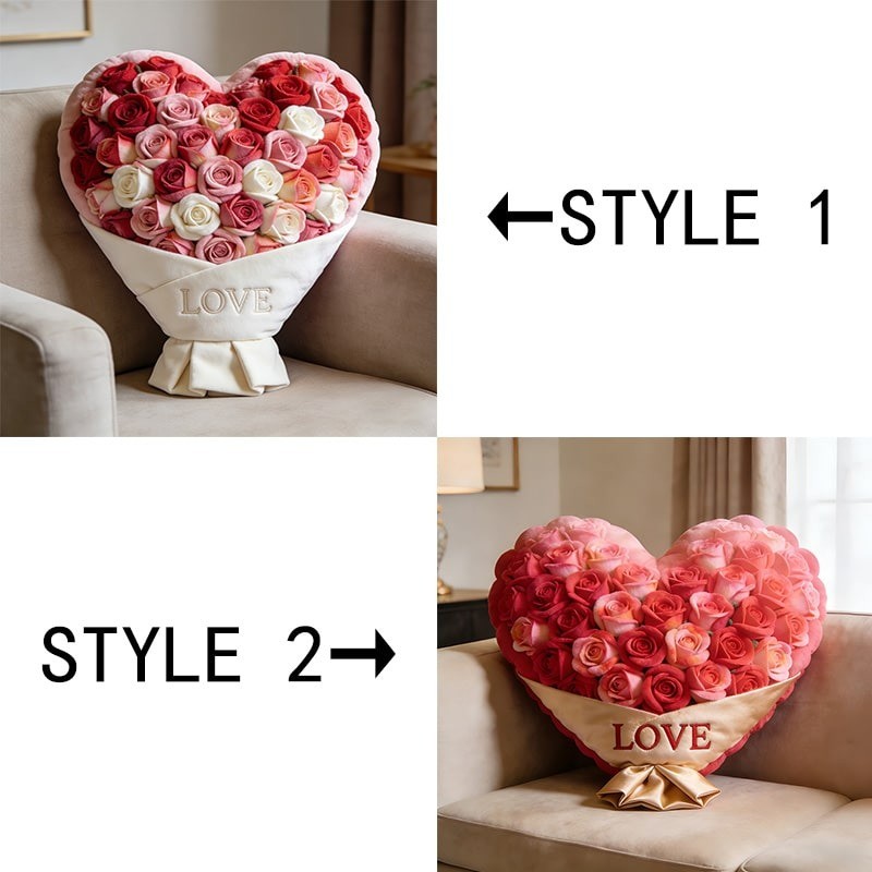 Personalized Heart Shaped Flower Bouquet Themed Throw Pillow