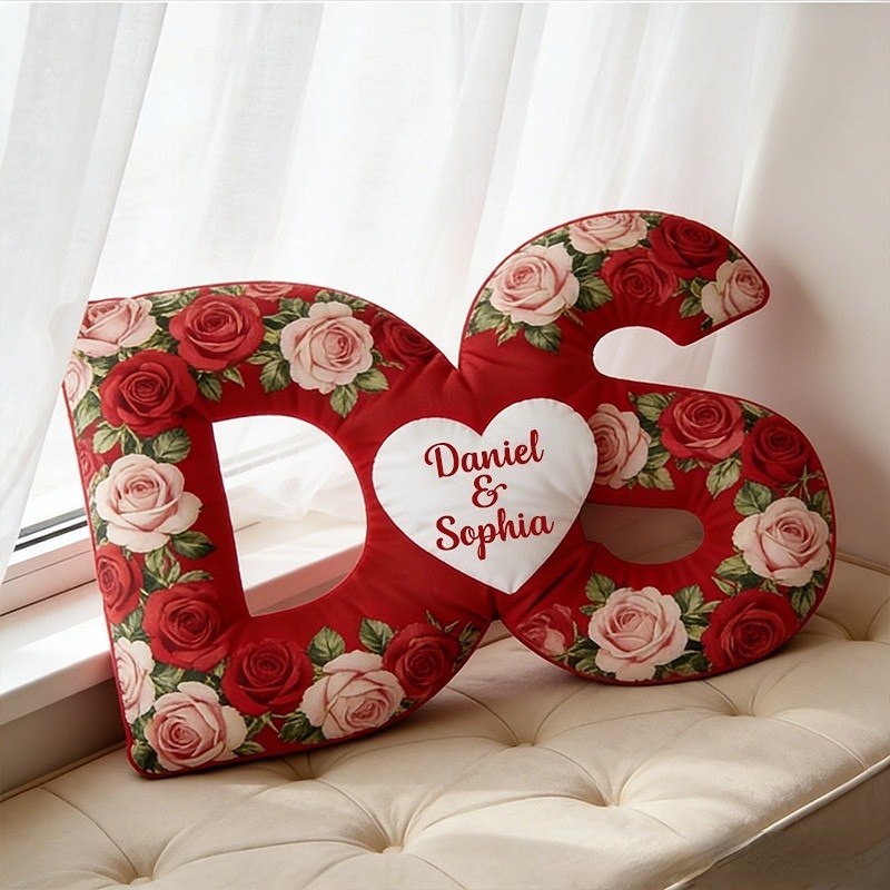 Personalized Initial Heart Pillow Romantic Rose Design Throw Pillow for Wife Girlfriend Valentines Gift for Her