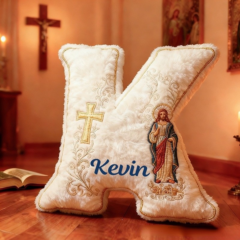 Personalized Jesus Cross Letter Pillow with Custom Name 3D Print Pillow Religious Faith Gift for Christians Jesus Lover Gift