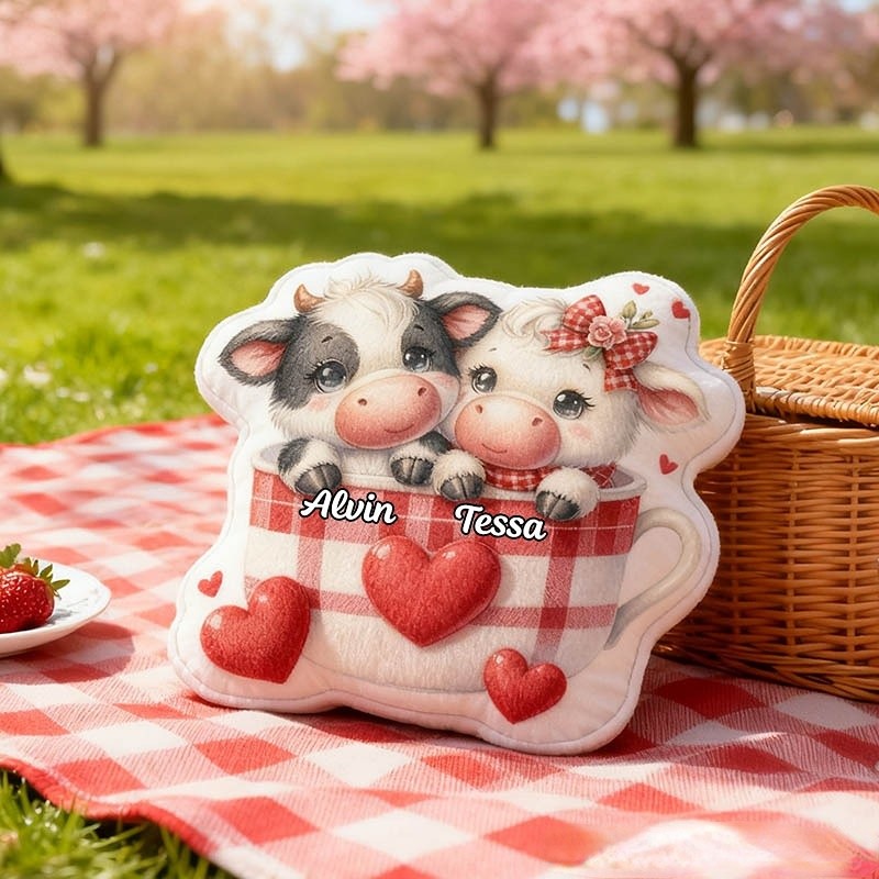 Personalized Pet Lover Couple Dairy Cow Letter Pillow with Custom Name Graphic 3D Print