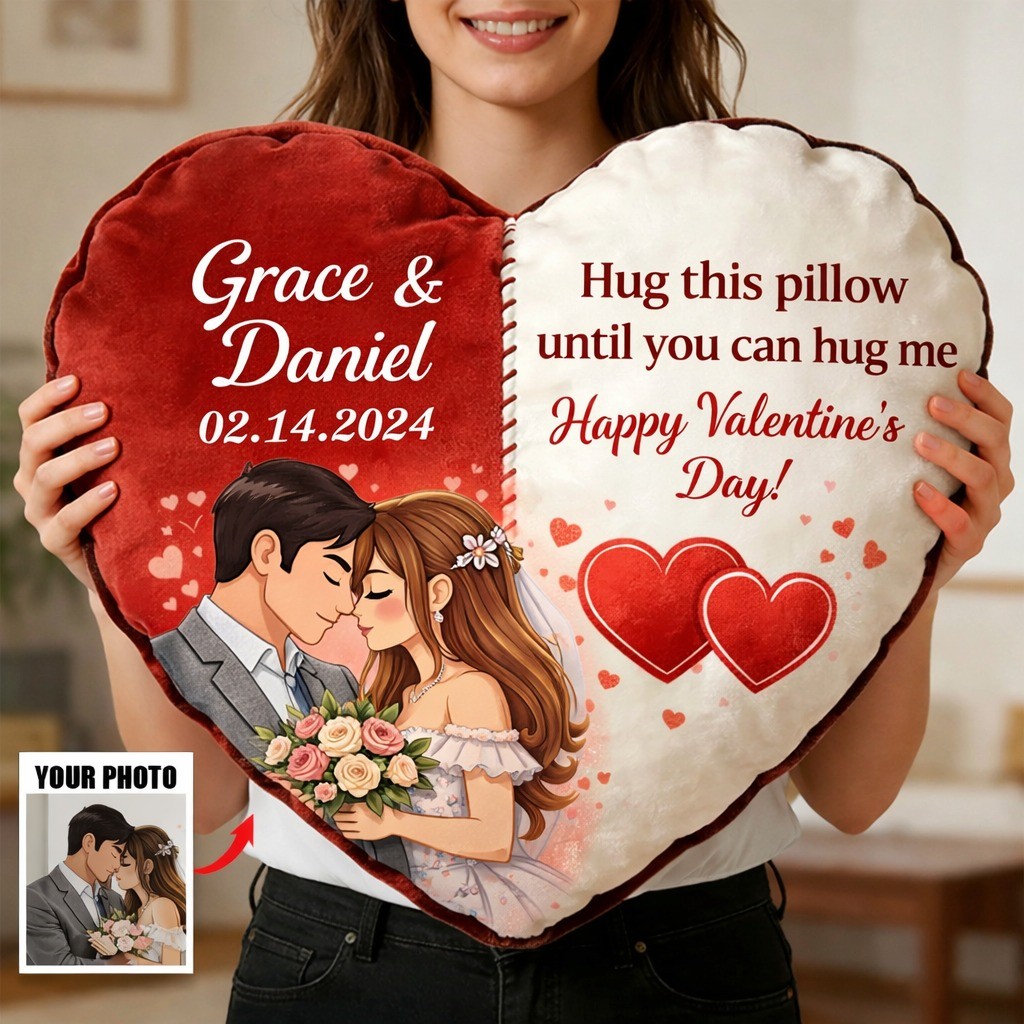 Personalized Photo Heart Pillow Custom Names & Valentine’s Day Message