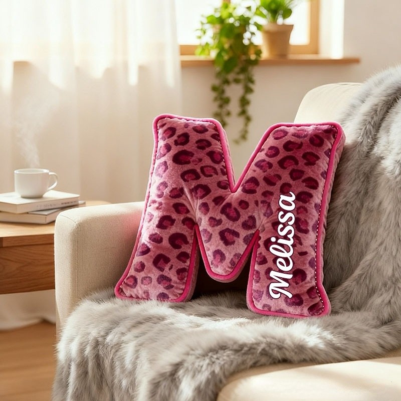 Personalized Pink Leopard Print Initial Pillow Valentine's Day Gift for Wife Girlfriend