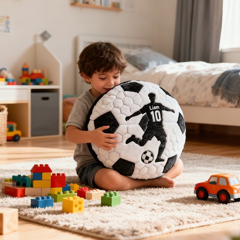 Personalized Soccer Pillow with Custom Name and Player Silhouette for Kids and Fans