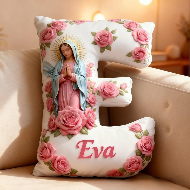 Personalized Virgin of Guadalupe Letter Pillow with Custom Name Religious Home Decor Pink Rose Graphic 3D Print Pillow